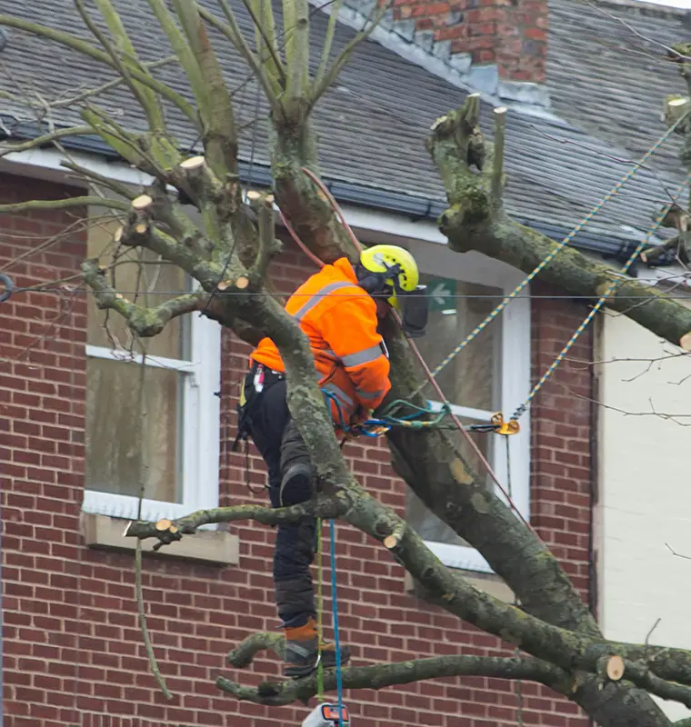 - Komplette Baumfällung mit Klettertechnik, Hubarbeitsbühne oder Kran